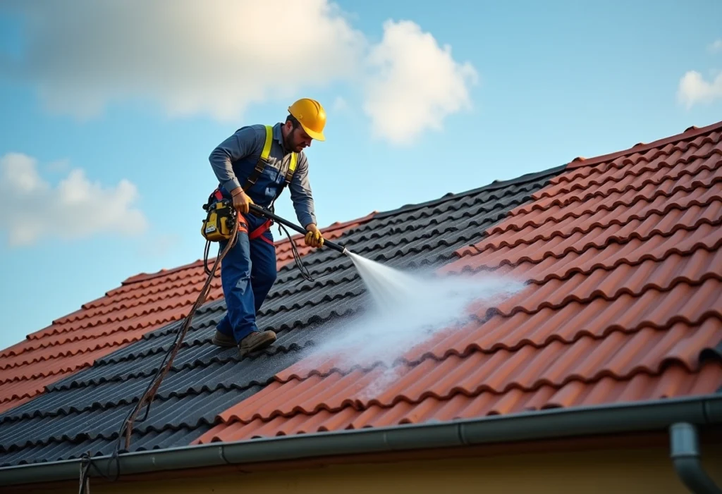 Il est temps de procéder au rinçage de la surface à l’aide d’un nettoyeur à haute pression ou d’un tuyau d’arrosage. Il est important de commencer par le haut de la toiture et de descendre progressivement. Après le rinçage, procédez à un nettoyage final avec une brosse douce pour éliminer les taches restantes.